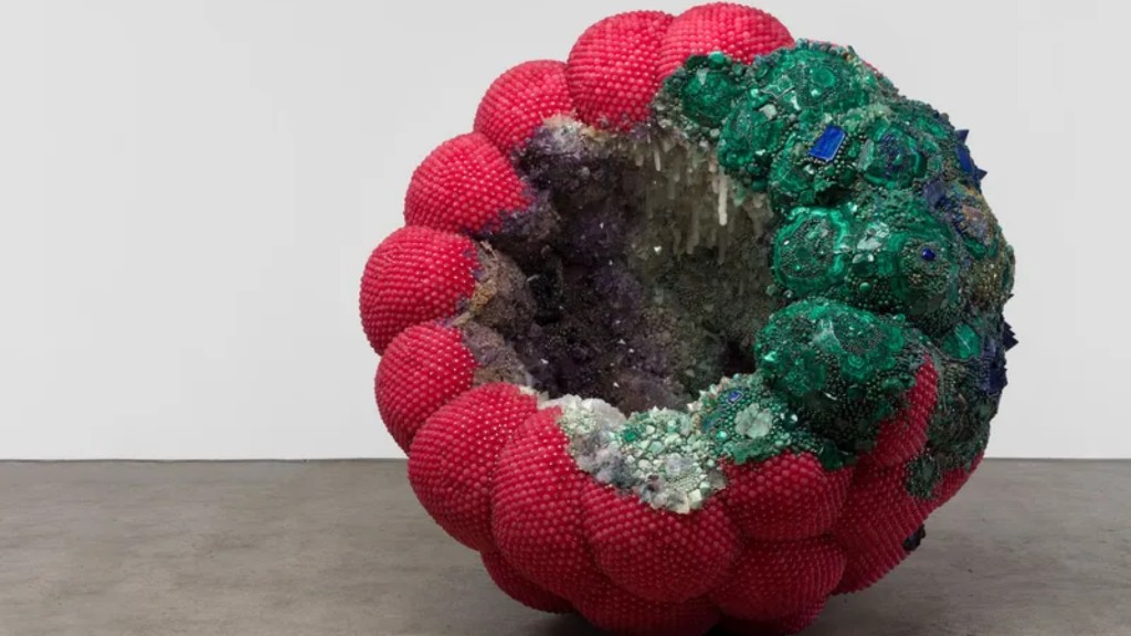 Uma das obras, intitulada “Dreamhouse”, apresenta uma espécie de “framboesa em decomposição”, construída com contas e gemas como Lápis-Lazúli, Malaquita e Turquesa.